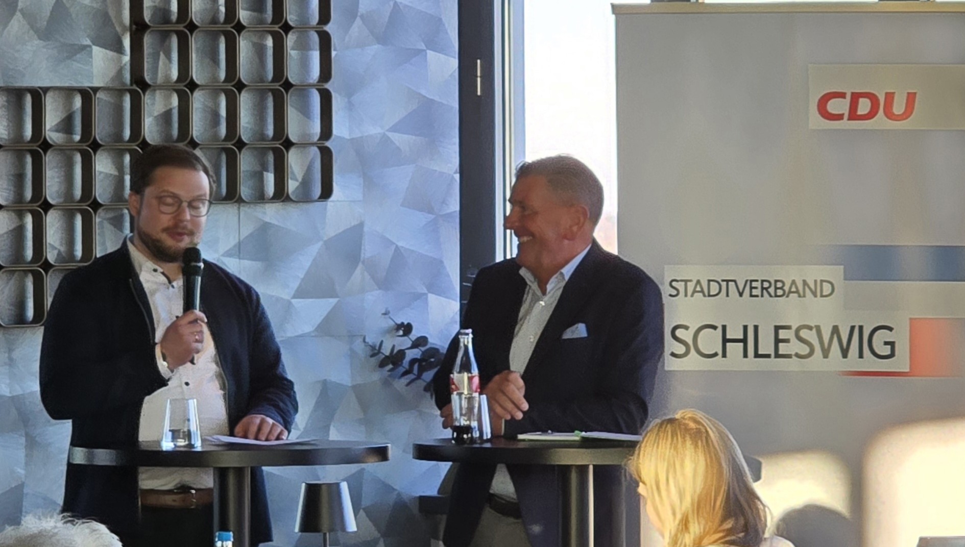 Hoch über der Schlei in der Bar 26 im Wikingturm fand die erste Veranstaltung der CDU Schleswig im Rahmen der Reihe „Stadtgespräche“ statt. Gast des Abends war der Bürgermeister der Stadt Schleswig, Jonas Kähler.