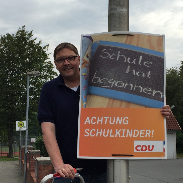 Im Regelfall sieht man Plakate der Parteien nur im Wahlkampf. Aktuell findet man im Stadtgebiet aber auch Plakate der CDU obwohl weit und breit keine Wahlen vor der Tür stehen. Anlass ist der Schulbeginn. „Wir möchten mit diesen Plakaten alle Verkehrsteilnehmer, aber gerade die Autofahrer auf den Beginn der Schulzeit hinweisen“ führt der Vorsitzende der Schleswiger CDU, Helge Lehmkuhl aus und ergänzt: „denn gerade die Schulanfänger, welche in den kommenden Tagen an den Schleswiger Grundschulen in einen neuen Lebensabschnitt starten, sind auf unser aller Vor- und auch Rücksicht angewiesen.“