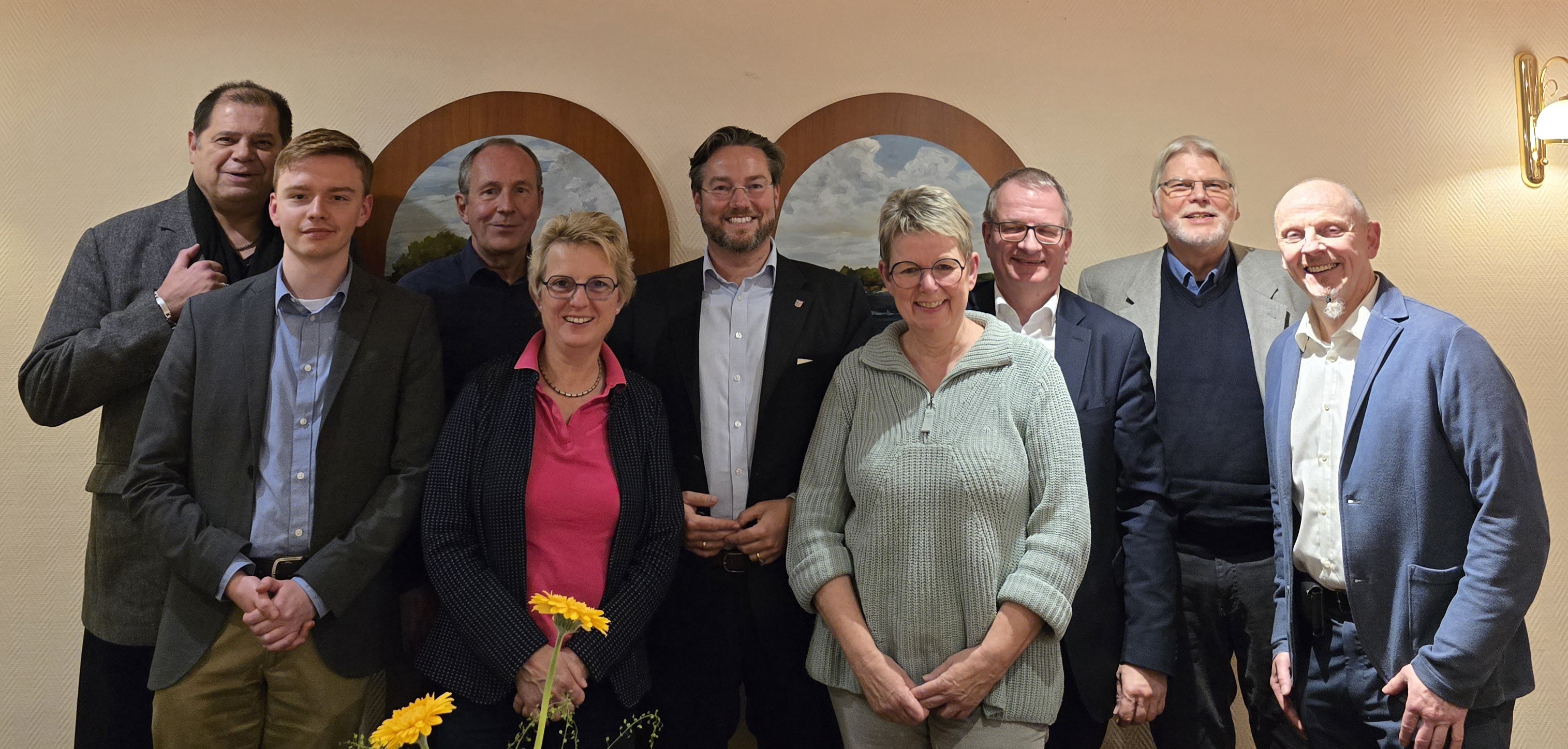 Dr. Otto Carsatens, Bildmitte, mit Vertretern der Ratsfraktion und des Vorstandes